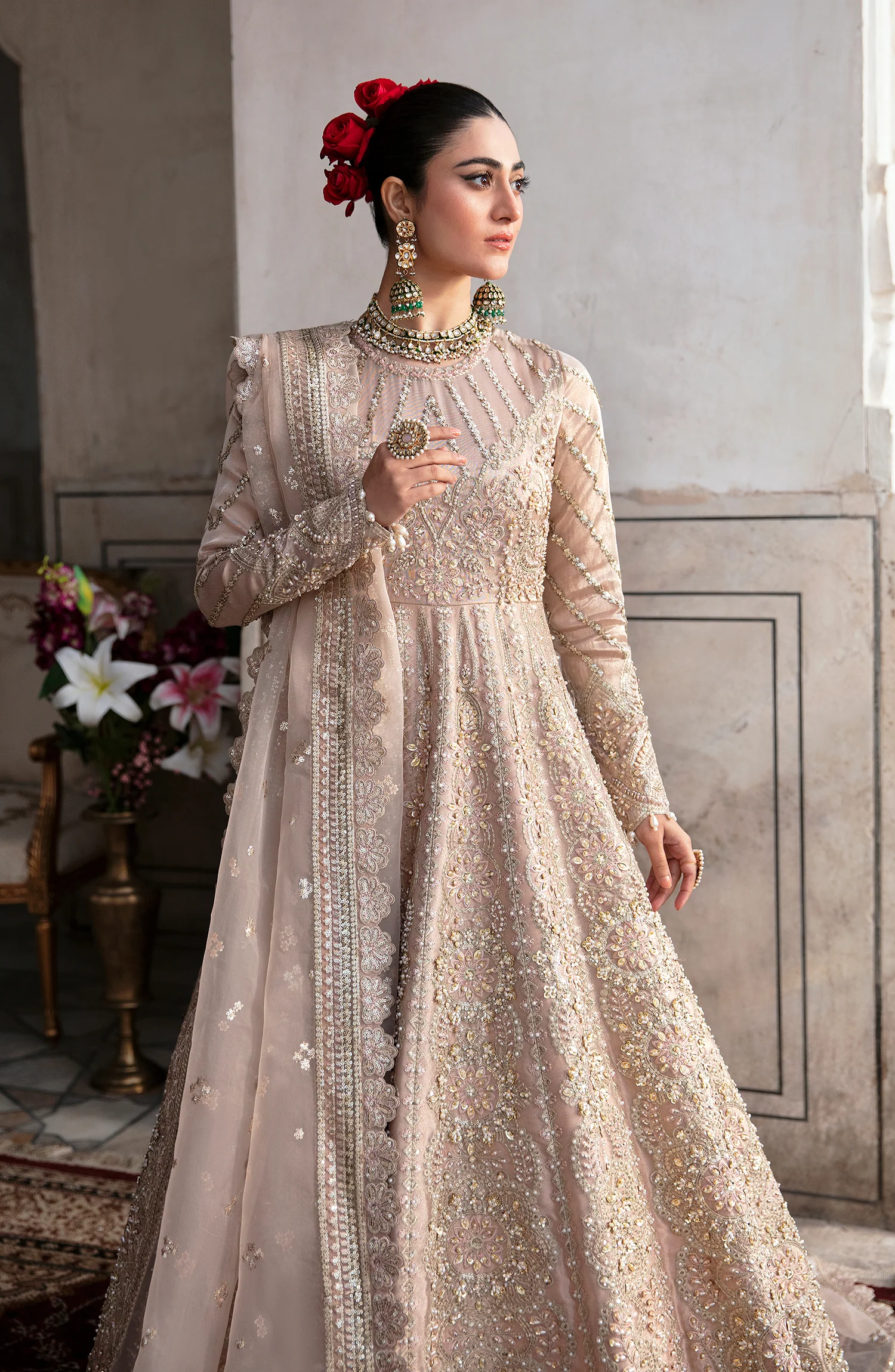 Hand Embellished Embroidery Front Kali 6 Pc Zari Tissue